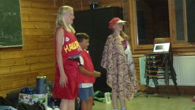 Nadat we patat en chinees gegeten hadden, werden de groepen voor de bonte avond samengesteld. Iedereen moest meedoen en moest zich verkleden.